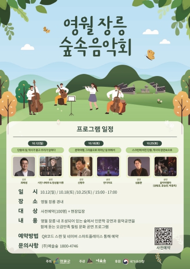 [뉴스다컴] 영월군은 오는 10월 12일, 18일, 25일 오후 3시부터 5시까지 세계유산 장릉 경내에서 ‘영월 장릉 숲속 음악회’를 개최한다.