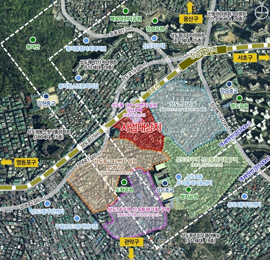 대상지는 지하철 7호선 장승배기역 인근에 위치하며 역세권 장기전세주택(상도스타리움) 및 모아타운(상도동 242번지 일대), 신속통합기획(상도14,15,23구역) 등 개발사업이 활발하게 진행 중으로, 인접개발 구역과 함께 역세권 장기전세주택 사업 추진을 통해 장승배기역 역세권 지역의 주택공급 확대 및 공간구조 재편을 하고자 한다.
