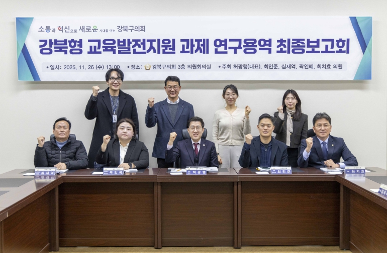 [뉴스다컴] 강북구의회 의원연구단체인 ‘강북형 교육발전지원 연구회’ (대표의원 허광행)는 지난 11월 26일 의회 3층 의원회의실에서 최종보고회를 열었다.