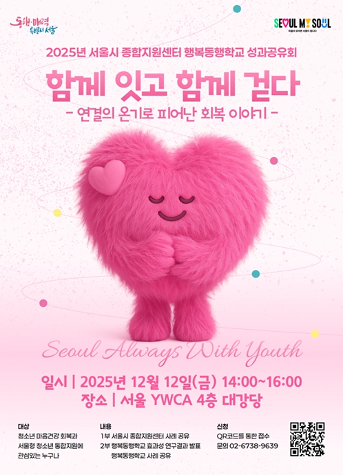 [뉴스다컴] 서울시는 지난 12월 12일 서울YWCA 대강당(중구 명동)에서 청소년과 보호자, 시설 관계자 등 130여 명이 참석한 가운데 '2025 청소년행복동행학교‧청소년종합지원센터 성과공유회'를 개최했다. ‘함께 잇고 함께 걷다’를 주제로 지난 1년간 서울시가 추진해 온 위기청소년 지원 사업의 운영 성과와 주요 사례를 공유하고 향후 발전 방향을 논의했다.