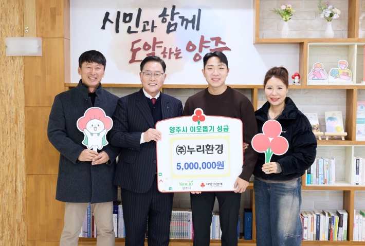 [뉴스다컴] 양주시가 지난 12일 ㈜누리환경(대표 이재민)으로부터 이웃돕기 성금 500만 원을 기탁받았다.