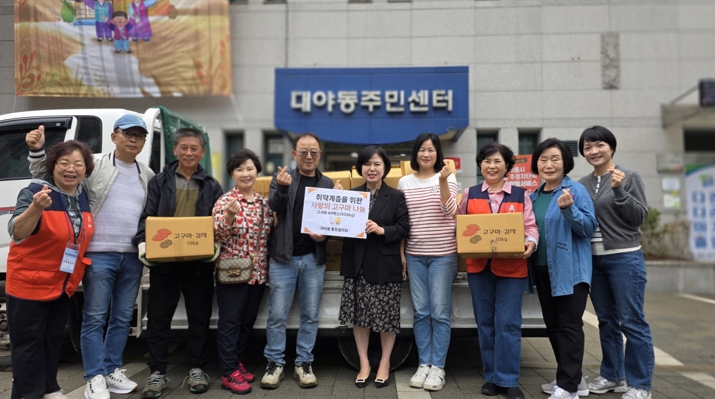 [뉴스다컴] 시흥시 대야동 통장협의회는 지난 10월 10일 대야동 주민센터에서 지역 취약계층을 위한 고구마 40상자(500kg) 전달식을 열었다. 이번 나눔은 지역 사회 돌봄의 공백을 줄이고, 따뜻한 명절 분위기를 어려운 이웃들과 나누기 위해 마련됐다.