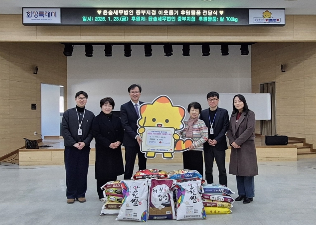 [뉴스다컴] 윤솔세무법인 동부지점이 23일 설 명절을 앞두고 쌀 700kg을 화성특례시 팔탄면에 기부하며 지역 사회 나눔 실천에 나섰다.