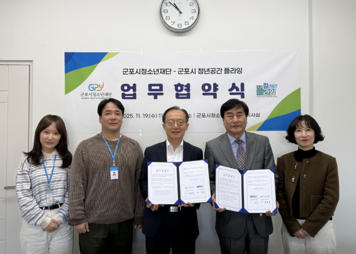 [뉴스다컴] 재단법인 군포시청소년재단은 11월 19일 대표이사실에서 군포시청년공간플라잉과 청소년·청년의 성장 연계 및 참여 지원을 위한 업무협약을 체결했다.