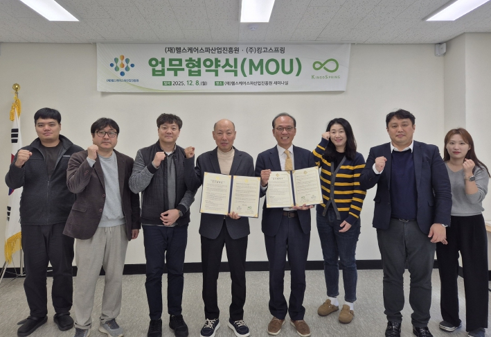 [뉴스다컴] 헬스케어스파산업진흥원(원장 이경헌)은 성균관대학교 엑셀러레이터 킹고스프링(대표이사 정진동)과 창업 활성화 및 지역 창업 생태계 구축을 위한 업무협약(MOU)을 체결했다고 8일 밝혔다.