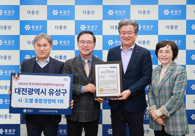 [뉴스다컴] 대전 유성구가 한국공공자치연구원이 실시한 ‘2025년 한국지방자치경쟁력지수(KLCI) 평가’에서 전국 자치구 3위, 대전에서는 1위를 기록하며 경쟁력 강한 도시의 위상을 재확인했다.