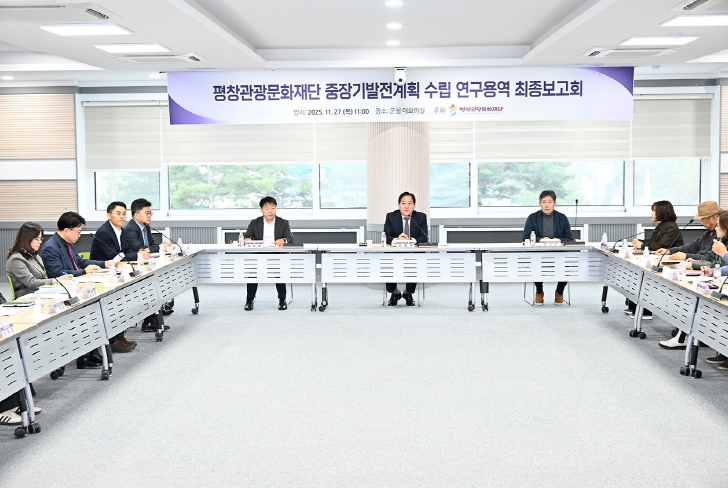 [뉴스다컴] 평창관광문화재단(이사장 심재국)은 평창군청 대회의실에서 재단 임직원과 군청 관계자, 용역사 등이 참석한 가운데 평창관광문화재단 중장기 발전 계획 수립 연구용역 최종 보고회를 개최했다.