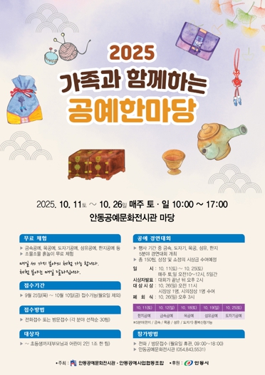 [뉴스다컴] 안동공예문화전시관이 주최하고 안동시가 후원하는 ‘2025 가족과 함께하는 공예한마당’ 행사가 한창 준비되고 있다. 이번 행사는 공예품의 아름다움을 전달하고 안동시민이 가까운 곳에서 작품을 접하며 공예에 대한 친근한 경험을 할 수 있도록 기획됐다.