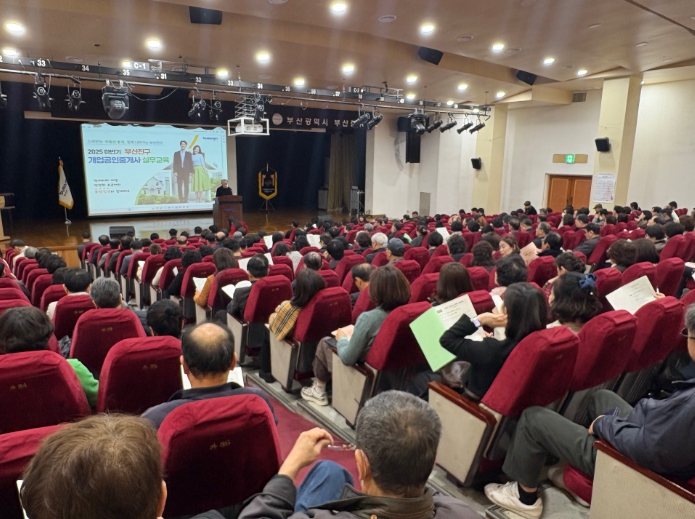 [뉴스다컴] 부산진구는 11월 17일, 관내 개업공인중개사 350여 명이 참석한 가운데 개업공인중개사 실무교육을 실시했다고 밝혔다.