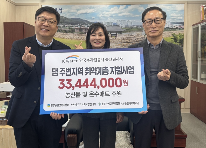 [뉴스다컴] 울주군시설관리공단 서부종합사회복지관(이사장 최인식)은 12월 8일, 한국수자원공사 울산권지사와 함께 ‘물길따라 온기 전하는 겨울나기 지원사업’을 추진해 댐 주변지역 취약계층 233세대에 온수매트와 농산물 꾸러미를 지원했다.