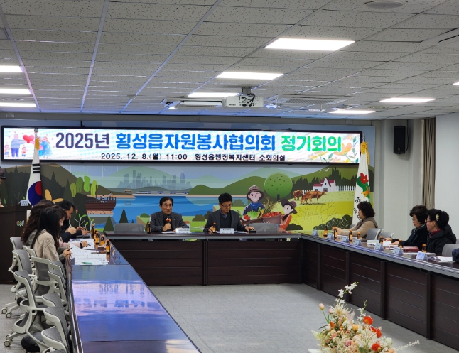 [뉴스다컴] 횡성읍자원봉사협의회(회장 이석원)는 8일 횡성읍 행정복지센터 소회의실에서 회원 20여 명이 참석한 가운데 2025년 4분기 정기회의를 개최했다.