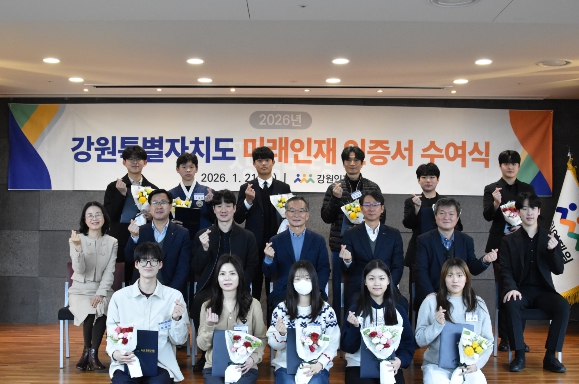 [뉴스다컴] 강원인재원은 1월 21일 KT·G 상상마당 춘천스테이 나비홀에서 ‘2026년 강원특별자치도 미래인재 인증서 수여식’을 개최했다고 밝혔다.
