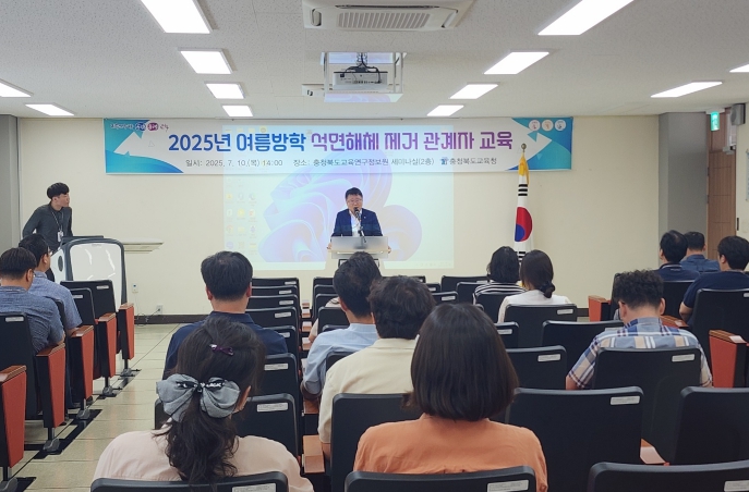 [뉴스다컴] 충청북도교육청은 10일, 2025년 여름방학 석면 해체․제거 관계자 교육을 교육연구정보원 세미나실에서 실시했다.