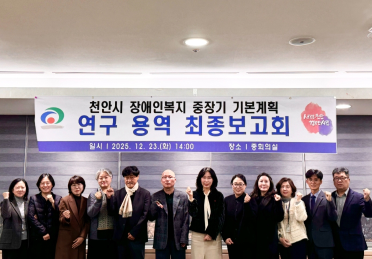 윤은미 복지정책국장은 “이번 중장기 기본계획은 장애인 당사자와 가족, 종사자, 전문가 여러분의 다양한 의견을 담아 천안시 여건에 맞는 실효성 있는 계획을 마련하는 데 중점을 뒀다”며 “향후 이 계획이 현장에서 체감할 수 있는 성과로 이어지도록 하겠다”고 말했다.