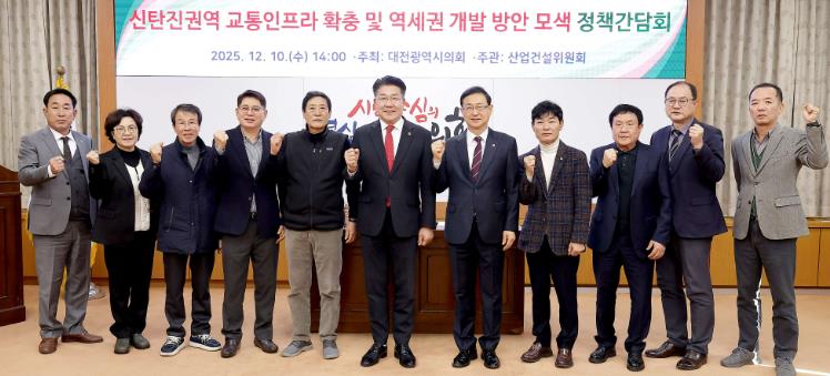 [뉴스다컴] 대전시의회 산업건설위원회는 10일 시의회 소통실에서 송활섭 의원(무소속, 대덕구2)을 좌장으로 「신탄진권역 교통인프라 확충 및 역세권 개발 방안 모색 정책간담회」를 개최했다.