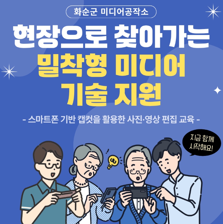 [뉴스다컴] 화순군은 1월부터 4월까지 관내 13개 읍·면 군민을 대상으로 ‘찾아가는 미디어공작소 교육’을 운영한다고 밝혔다.