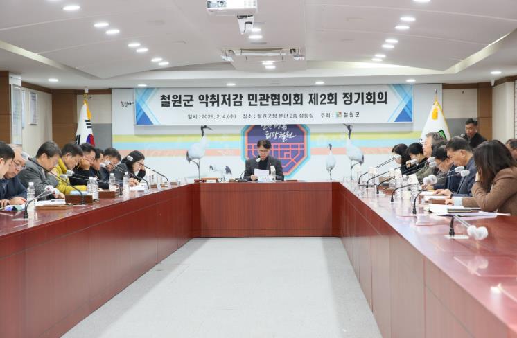 [뉴스다컴] 철원군은 2월 4일 오후 3시 군청 2층 상황실에서 ‘제2차 철원군 악취저감 민관협의회’를 개최하고, 고질적인 축산악취 문제 해결을 위한 정기회의를 가졌다.