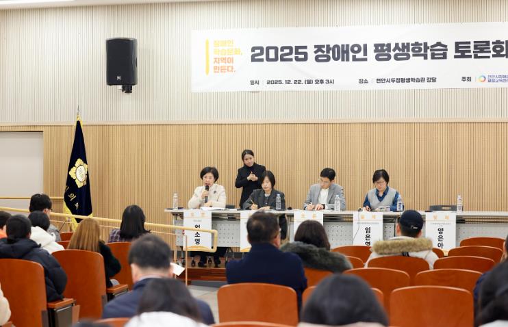[뉴스다컴] 천안시의회 엄소영 의원(더불어민주당, 부성1동·성거읍)은 22일 두정동평생학습센터에서'장애인 학습문화, 지역이 만든다' 정책토론회를 개최하고, 천안시 장애인 평생교육의 현황과 구조적 한계를 점검하며 지역 기반 학습환경 개선 방안을 논의했다.