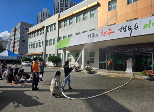 [뉴스다컴] 청주시 흥덕보건소는 24일 청주서부소방서 복대119안전센터와 함께 화재 예방 및 대응 능력을 강화하기 위한 합동 소방훈련을 진행했다.