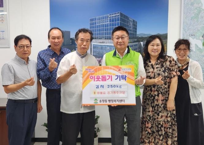 원불교 경기광주교당 안훈 주임교무는 17일 송정동 행정복지센터를 방문해 지역 내 취약계층에게 전달해 달라며 교구 회원들이 직접 담근 김치 50박스(250㎏)를 기탁했다.