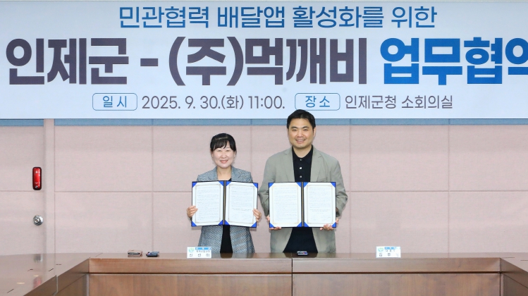 [뉴스다컴] 인제군은 9월 30일 군청 소회의실에서 민관협력 배달앱 ‘먹깨비’ 운영사와 업무 협약을 체결하고, 지역 소상공인 경영 안정과 군민 편익 증진을 위한 본격적인 협력에 나섰다.