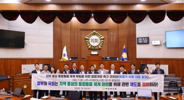 [뉴스다컴] 나주시의회는 15일 제273회 임시회 제1차 본회의를 열고 ‘지역 중심 통합돌봄 체계 확립을 위한 법령개정 촉구 건의안’을 채택했다.