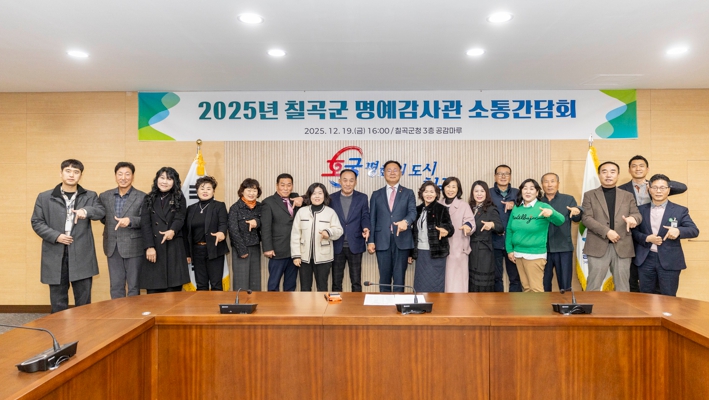 [뉴스다컴] 칠곡군은 지난 19일 군청 3층 공감마루에서 군민이 참여하는 열린 감사체계를 강화하고, 현장의 다양한 의견을 군정에 반영하기 위해 2025년 칠곡군 명예감사관 소통간담회를 개최했다.