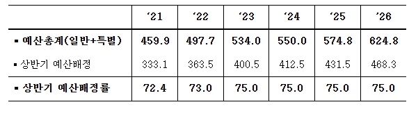 [뉴스다컴] 정부는 전체 세출예산의 75.0%를 상반기에 배정하는 내용의 「2026년도 예산배정계획」을 12.9일(화) 국무회의에서 확정했다.