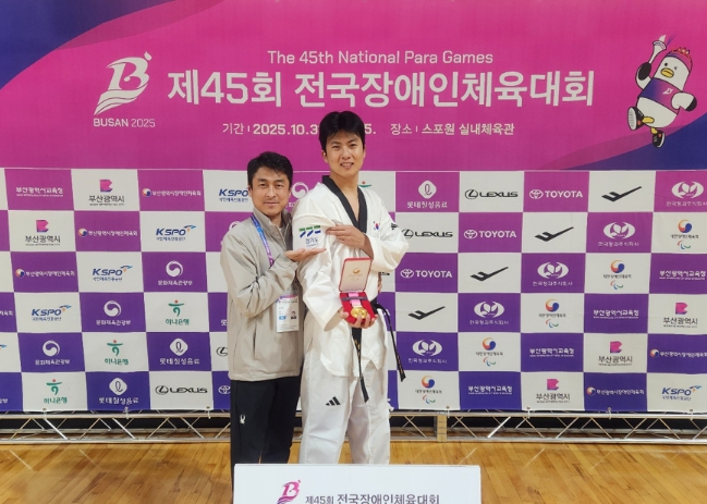 [뉴스다컴] 김포시는 김포시청 태권도팀의 이학성 선수가 지난 11월 1일부터 3일까지 부산광역시에서 열린 제45회 전국장애인체육대회 태권도 겨루기 +80kg급 경기에서 금메달을 차지했다고 밝혔다.