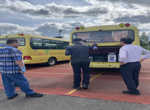 ▲ 교육지원청, 도로교통공단, 안전점검 관계자들이 차량을 점검하고 있다. |