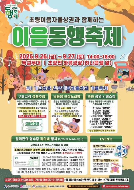 초량이음자율상권을 방문한 고객들이 직접 참여할 수 있는 현장노래방, 축하공연 및 버스킹공연을 통해 함께 즐기는 문화마당의 장을 열고 구매고객 경품추첨 및 페이백행사를 통해 지역소상공인 매출증대 및 방문객 소비촉진를 통해 부산 지역 경제활성화에도 기여할 것으로 보인다.