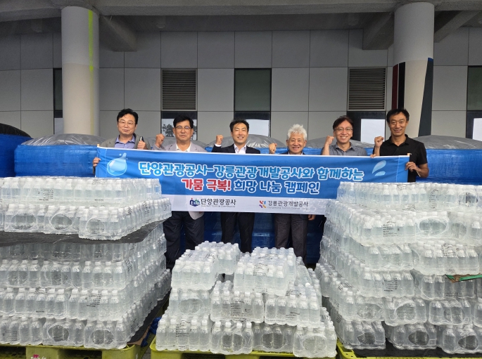 [뉴스다컴] 강릉관광개발공사(사장 강희문)는 충북 단양관광공사(사장 김광표)와 함께 극심한 가뭄으로 어려움을 겪고 있는 강릉시민들을 위해 200만 원 상당의 음료 1만2천 병을 긴급 지원했다고 18일 밝혔다.