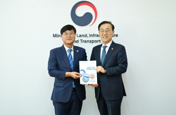 변광용 시장은 먼저, 국토발전전시관에서 김윤덕 국토교통부장관을 만나 △남부내륙철도 조기 개통 및 착공식 거제 개최 △거제~가덕도신공항 연결철도 제5차 국가철도망 구축계획 반영 △거제~통영 고속도로 건설(고속국도 35호선) 사업에 대해 설명했다.