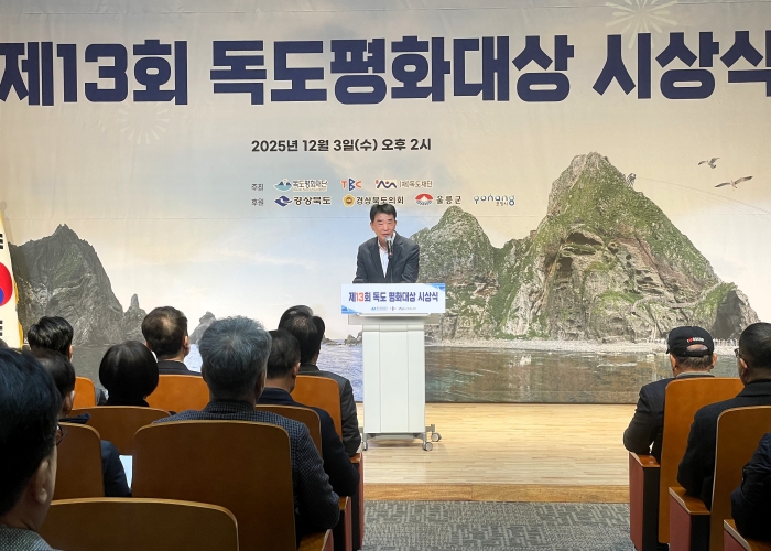 [뉴스다컴] 경상북도와 (재)독도평화재단은 3일 동부청사 강당에서 경상북도 환동해지역본부장, (재)독도평화재단 이병석 대표, 포항시장, TBC 대표이사, 수상자 등 100여 명이 참석한 가운데 제13회 독도평화대상 시상식을 개최했다.