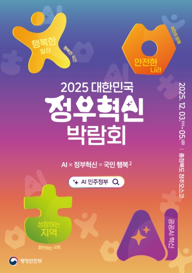 행정안전부가 ‘인공지능(AI) × 정부혁신 = 국민 행복²’을 슬로건으로 개최하는 이번 박람회는 새 정부의 정부혁신 방향을 국민에게 소개하고, 중앙부처·지방정부·공공기관·민간기업이 함께 혁신 성과를 공유하는 자리다.