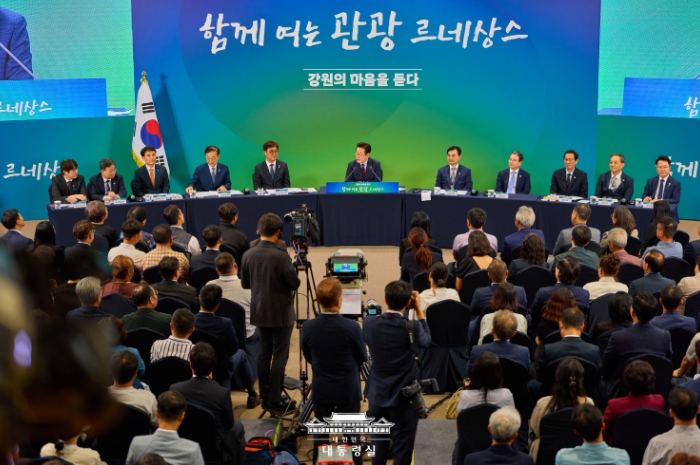 이 대통령은 "강원도는 전국 최대 관광지이자 최고의 청정지역이기도 한데, 또 한편으로 남북 대치에 따른 엄청난 희생을 치르는 지역"이라며 "지역 내 성장 발전이 상대적으로 정체가 되면서 많은 분이 수도권으로 떠난, 소위 수도권 집중 피해를 다른 지역과 똑같이 입고 있는 곳"이라고 밝혔다.