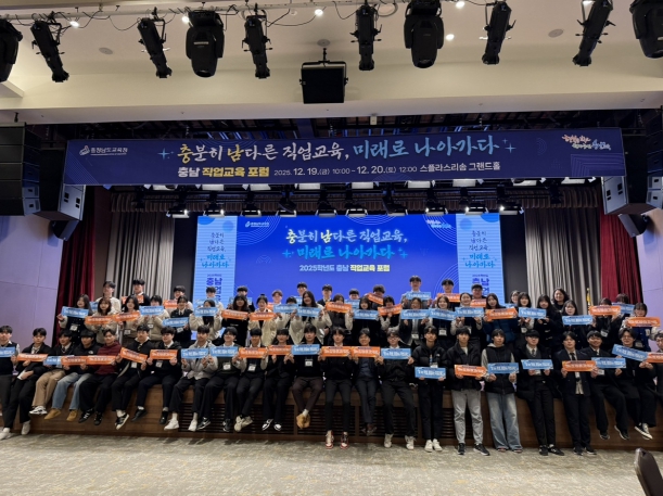 [뉴스다컴] 충남교육청은 12월 19일부터 20일까지 예산 스플라스 리솜에서 학생 60명, 교사 380명이 참여한 가운데‘2025학년도 충남 직업교육 포럼’을 개최한다.