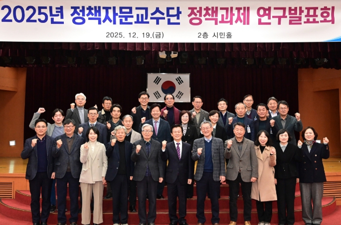 [뉴스다컴] 진주시는 19일 진주시청 시민홀에서 조규일 시장을 비롯해 정책자문교수단, 공무원 등 120여 명이 참석한 가운데 ‘2025년도 정책자문교수단 정책과제 연구발표회’를 개최했다.