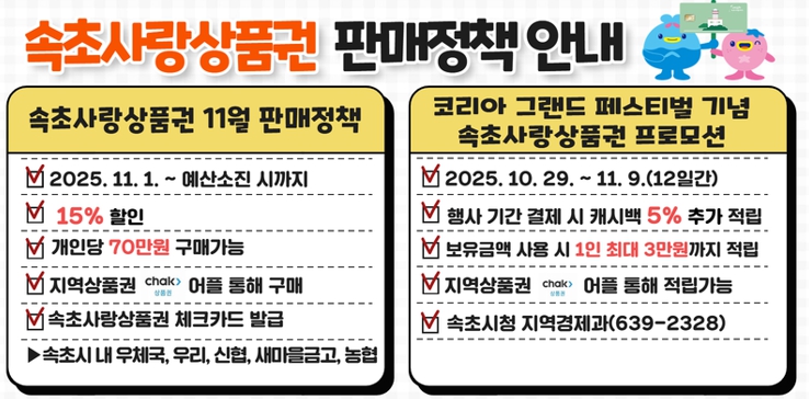 | ▲ 속초사랑상품권 11월 15% 할인, 캐시백 5% 추가 적립 |