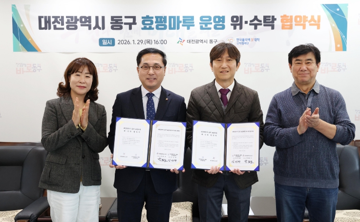 [뉴스다컴] 대전 동구는 29일 한국폴리텍Ⅳ대학 산학협력단(단장 김건완)과 효평마루 민간위탁 운영을 위한 위·수탁 협약을 체결했다고 밝혔다.
