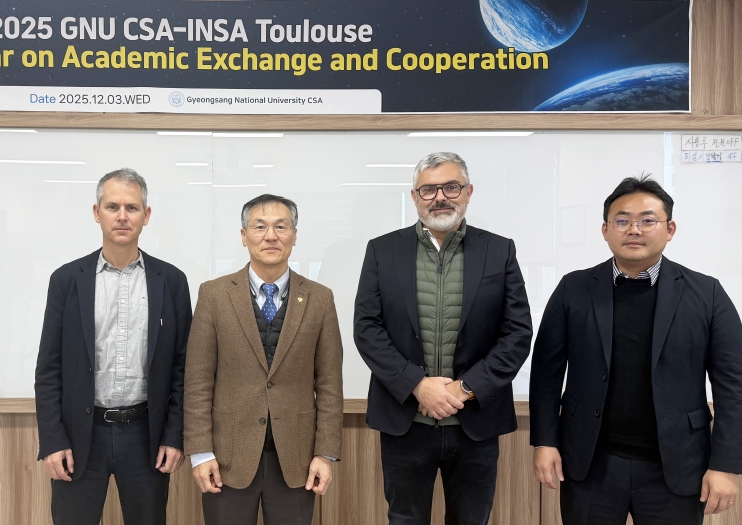 [뉴스다컴] 경상국립대학교 우주항공대학은 12월 3일 가좌캠퍼스 항공우주산학협력관에서 프랑스 국립응용과학원(INSA Toulouse, 인사툴루즈)와 ‘우주항공 연구교류회 및 특강’을 개최했다.
