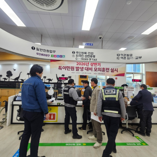 [뉴스다컴] 고성군은 1월 29일 군청 열린민원과에서 고성경찰서와 연계하여'2026년 상반기 특이민원 대응 모의훈련'을 실시했다.