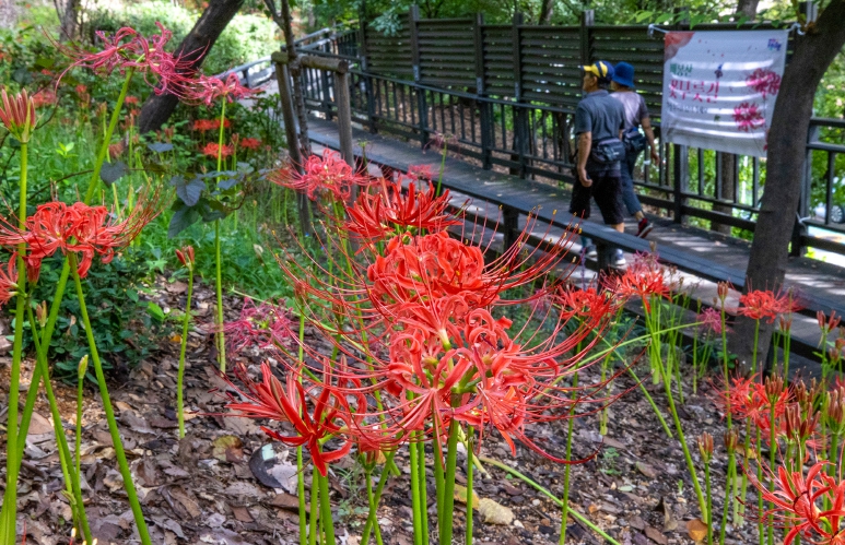 ▲ '배봉산 꽃무릇길'에 붉은 꽃무릇이 개화한 모습 |