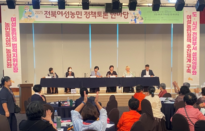 [뉴스다컴] 전북특별자치도는 9월 22일 오후 2시 부안 해나루 가족호텔에서 '2025 전북여성농민 정책토론 한마당'을 개최했다고 밝혔다. 이번 토론회에는 여성농업인 150여 명이 참석해 여성농업인의 지위와 역할을 제도적으로 보장하기 위한 다양한 방안을 논의하며 현장의 목소리를 적극 전달하는 자리가 됐다.