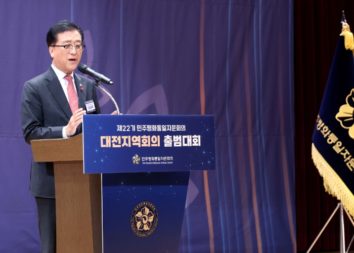 [뉴스다컴] 대전시의회 조원휘 의장은 21일 대전시청에서 개최된 제22기 민주평화통일자문회의 대전지역회의 출범식에 참석해 축하의 인사를 전하며, 대한민국의 온전한 평화와 번영을 위해 힘써주실 것을 당부했다.