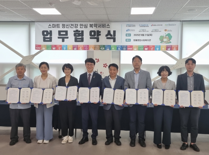 [뉴스다컴] 대구 수성구 범물종합사회복지관(관장 김병극)은 지난 21일 ㈜에스헬스라이프, ㈜범일정보, 대구 수성구정신건강복지센터, 범물1동 행정복지센터, 범물2동 행정복지센터, 범물노인복지관, 예그리나복지센터와 함께 ‘스마트 정신건강 안심 복약서비스’ 추진을 위한 업무협약을 체결하고 지역사회 협력 기반을 강화했다.