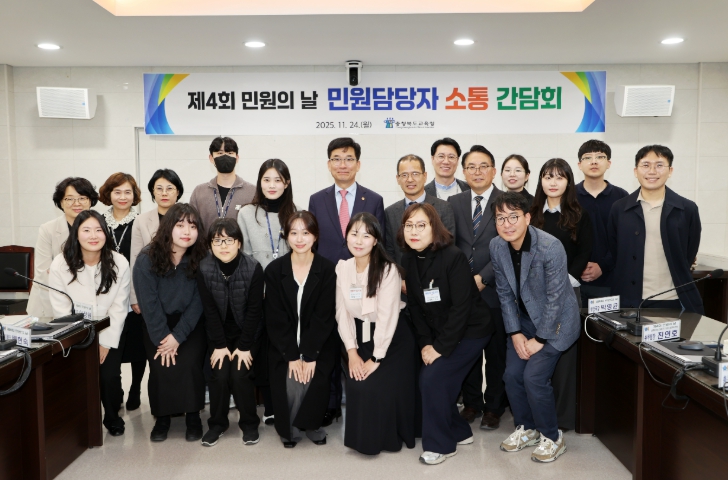 [뉴스다컴] 충청북도교육청은 11월 24일, 제4회 민원의 날을 맞아 민원업무 담당자들을 격려하고, 현장의 목소리를 직접 청취하는 뜻깊은 자리를 마련했다고 밝혔다.