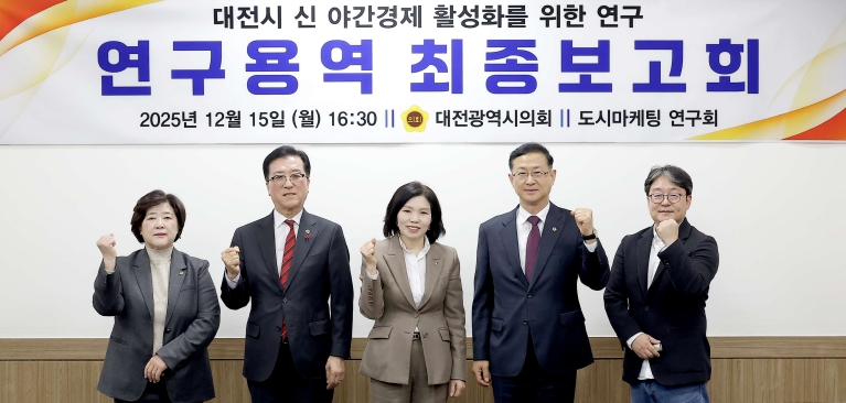 [뉴스다컴] 대전시의회 ‘도시마케팅 연구회(회장 이금선 의원)’는 15일 시의회 공감실에서 ‘대전시 신 야간경제 활성화를 위한 연구’ 용역 최종 보고회를 개최했다.