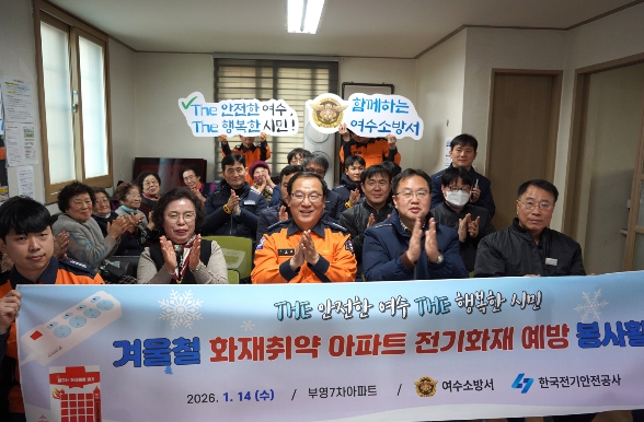 [뉴스다컴] 여수소방서는 1월 14일, 여수시 여서동에 위치한 부영7차아파트에서 한국전기안전공사 여수지사와 함께 자동소화멀티탭 기증식 및 화재 예방 합동 안전 활동을 실시했다.