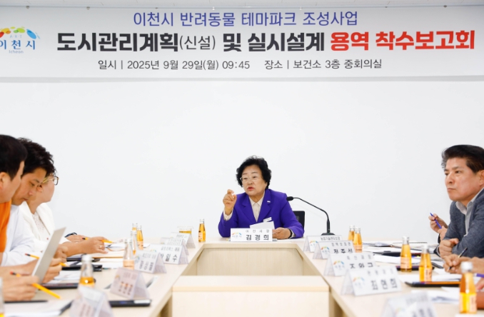 [뉴스다컴] 이천시가 반려동물, 반려인과 비반려인이 함께 어울릴 수 있는 복합문화공간인 ‘반려동물 테마파크’ 조성을 본격 추진한다고 밝혔다. 시는 최근 율면 월포리 일원에 대한 설계 용역에 착수했으며, 9월 29일 착수보고회를 통하여 사업의 방향과 세부 내용을 발표하고 각계각층의 의견을 수렴했다.